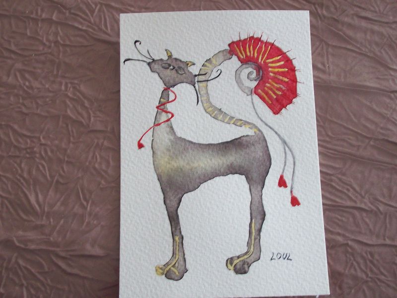 chez LOULpremiers pas en technique aquarelle, le chat mon animal fétiche et divers tableaux réalisés